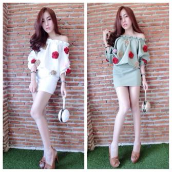 เดรสปาดไหล่ ติดดอกไม้ เดรสสุดชิค กับผ้ายืดอย่างดี...
