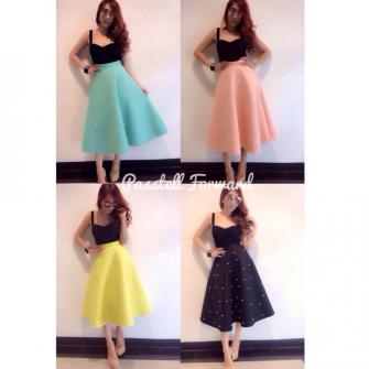 690฿พร้อมส่ง กระโปรงยาวผ้าฟองน้ำติดมุกอย่างดี 4สี ฟ้า มะนาว ดำ ชม งานเกาหลี มี2size ka s25-26 m27 ...